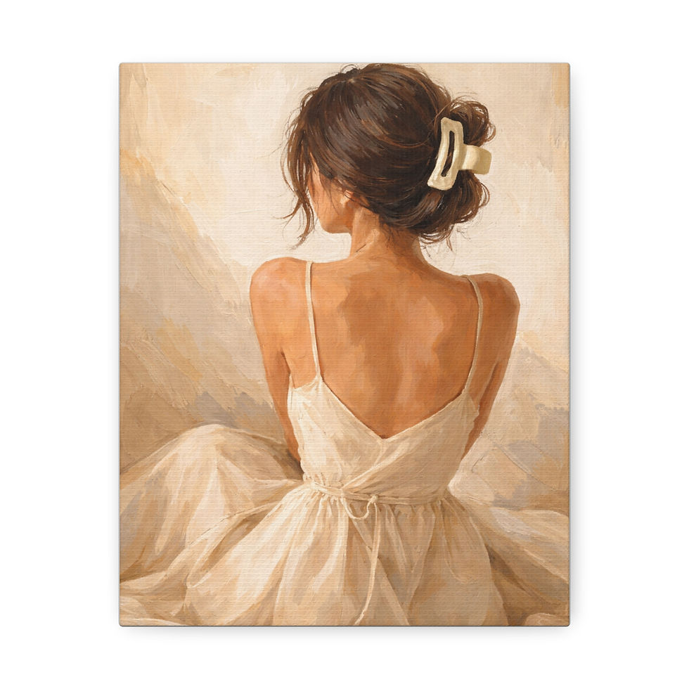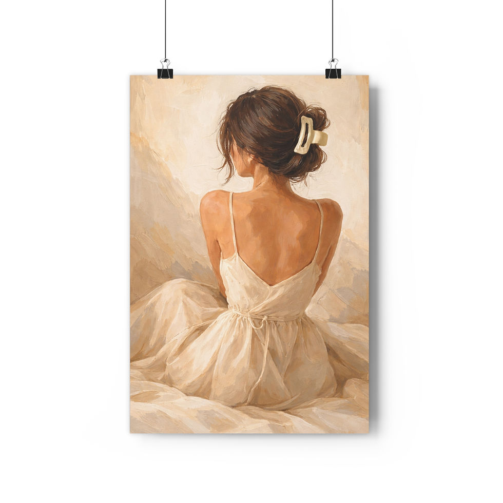 Giclée Art Print — Serene Woman in Cream Dress, Elegant Neutral Wall Art